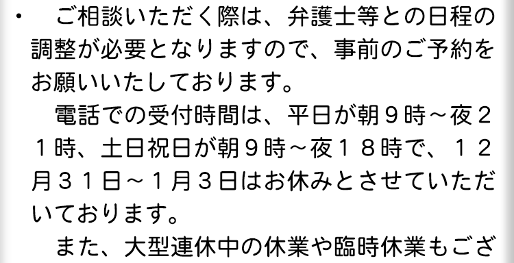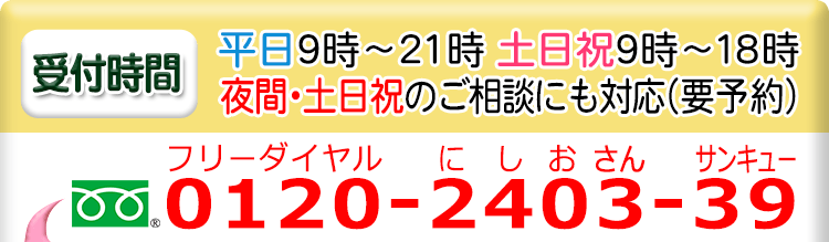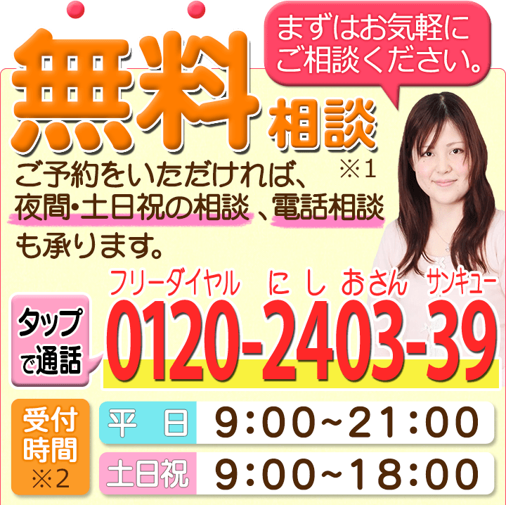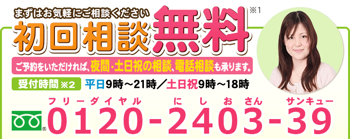 ご相談のお問合せ・受付はこちらのフリーダイヤル、メールフォームにて行っております。東京の方もこちらへお問い合わせください。