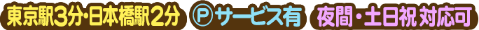 当事務所は、東京駅から徒歩3分の立地にあります。周囲の駐車場情報や事務所の外観など、こちらからご確認いただけますので、ご相談をお考えの方はご覧ください。
