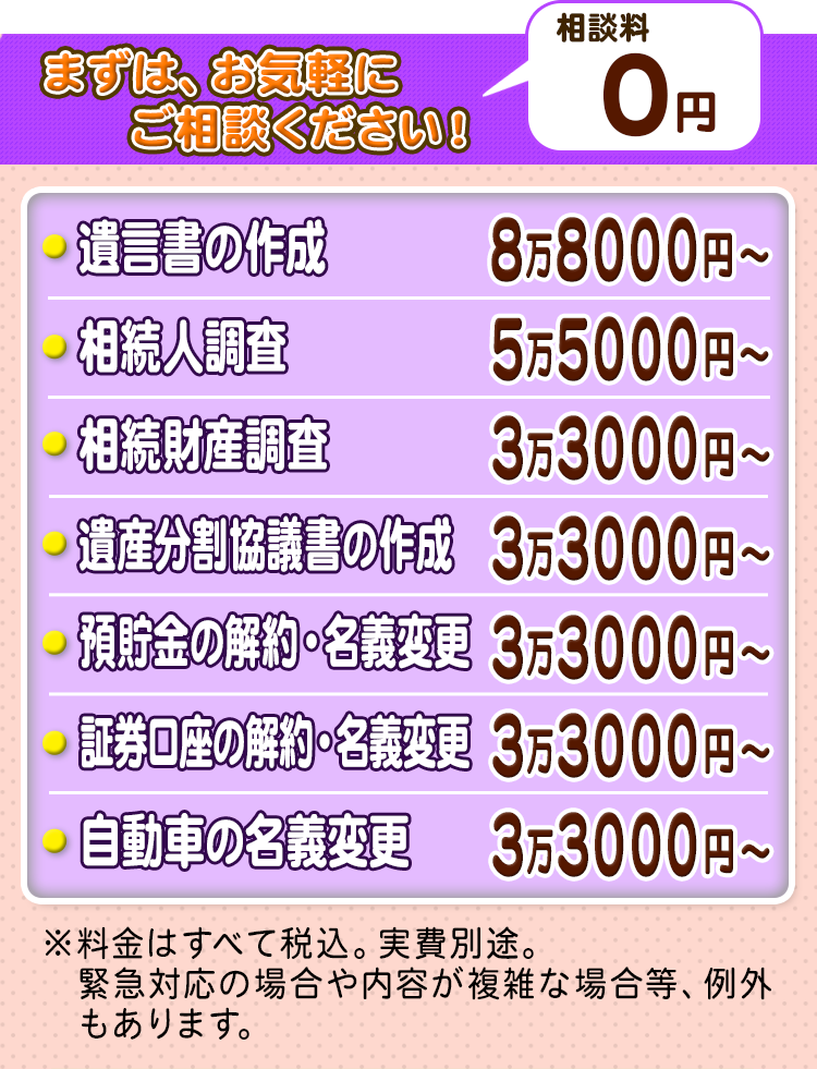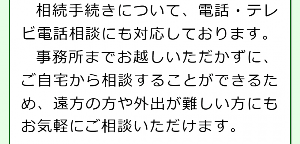 相続手続きに関するご相談は、原則無料ですし、お電話でもご相談いただけます。