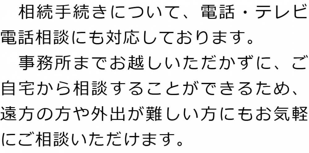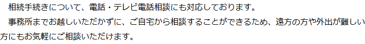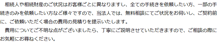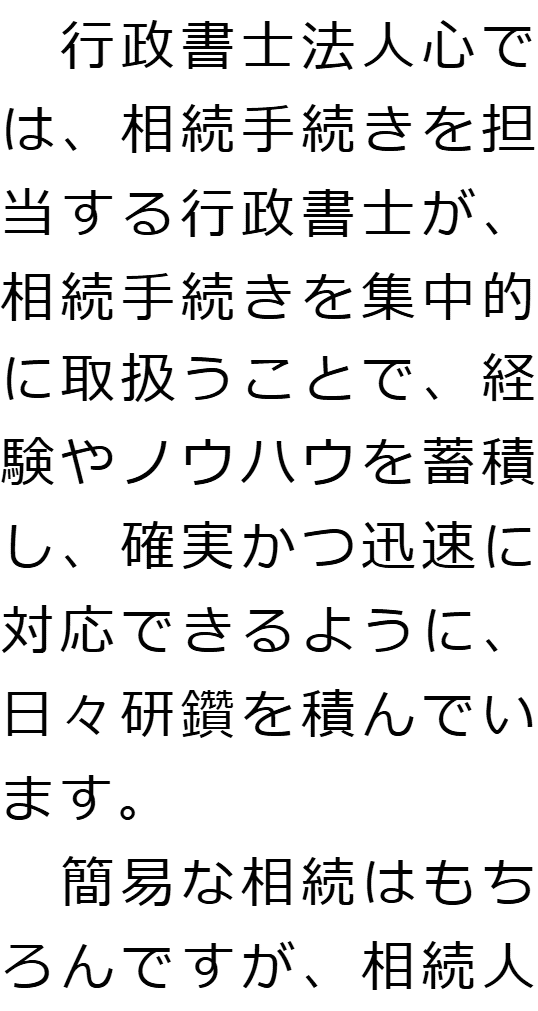1 相続手続きを集中的に取扱う行政書士が担当! 2 行政書士法人心とグループ企業が連携して相続をトータルサポート! 3 お客様相談室を設けています! 4 電話・テレビ電話相談でご自宅から気軽に相談! 5 費用についてわかりやすくご説明いたします!