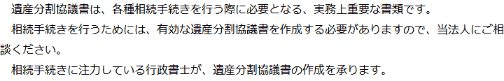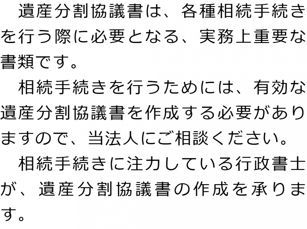 トップ業務内容遺産分割協議書の作成 階層構造▼ 業務内容(目次) 遺産分割協議書の作成 業務内容(目次)業務内容トップ行政書士法人心の業務内容遺言遺産整理相続人調査相続財産調査遺産分割協議書の作成預金・貯金の解約・名義変更証券口座の解約・名義変更自動車の名義変更心グループのその他の業務内容家族信託・民事信託節税対策事業承継遺言の検認相続放棄限定承認遺産分割遺留分侵害額請求相続登記相続税申告相続税調査 受付時間 平日 9時~21時、土日祝 9時~18時 夜間・土日祝の相談も対応します (要予約) 所在地 〒103-0028 東京都中央区八重洲1-5-9八重洲加藤ビルデイング6F (旧表記:八重洲アメレックスビル6F) 0120-2403-39 お問合せ・アクセス・地図