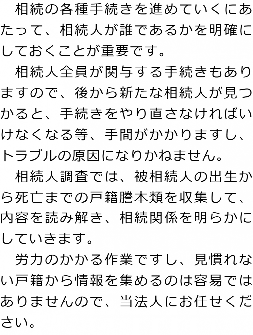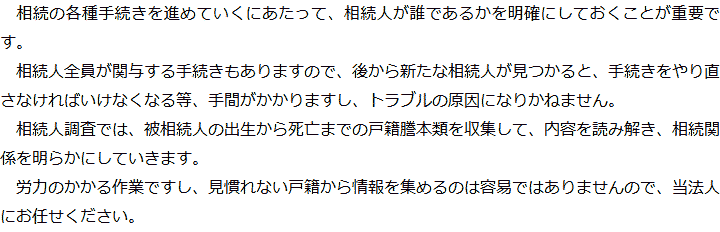 しかし実際は、誰がその協議に出席すべきかを確定させるための相続人調査が必要となります。