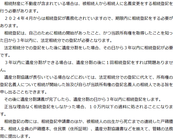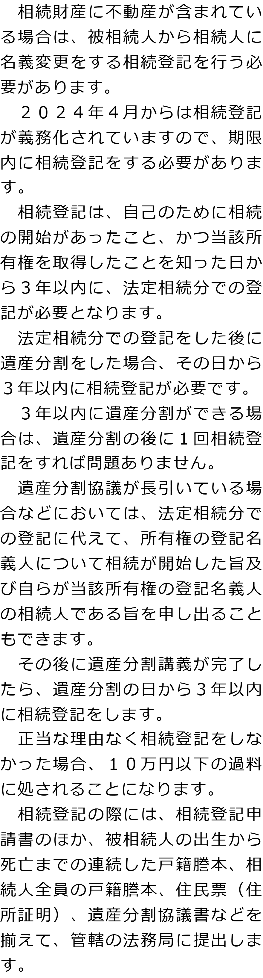 Q遺産分割では何が必要ですか?AQ相続登記はどのような場合に必要ですか?AQ相続税申告はどのような場合に必要ですか?A Q&A(目次)Q&Aトップ相続手続きの必要事項に関するQ&A 受付時間 平日 9時~21時、土日祝 9時~18時 夜間・土日祝の相談も対応します (要予約) 所在地 〒103-0028 東京都中央区八重洲1-5-9八重洲加藤ビルデイング6F (旧表記:八重洲アメレックスビル6F) 0120-2403-39 お問合せ・アクセス・地図