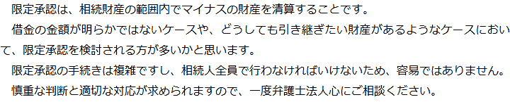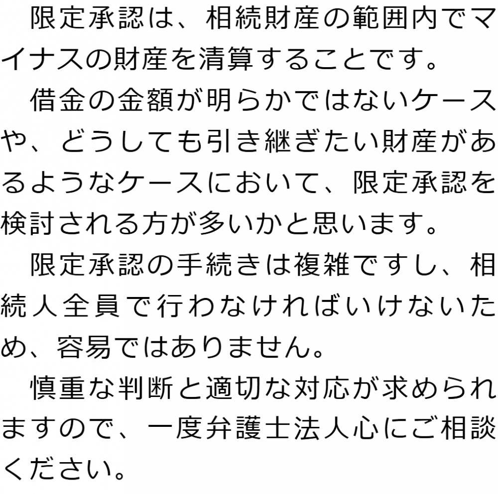 トップ業務内容限定承認 階層構造▼ 業務内容(目次) 限定承認 業務内容(目次)業務内容トップ行政書士法人心の業務内容遺言遺産整理相続人調査相続財産調査遺産分割協議書の作成預金・貯金の解約・名義変更証券口座の解約・名義変更自動車の名義変更心グループのその他の業務内容家族信託・民事信託節税対策事業承継遺言の検認相続放棄限定承認遺産分割遺留分侵害額請求相続登記相続税申告相続税調査 受付時間 平日 9時~21時、土日祝 9時~18時 夜間・土日祝の相談も対応します (要予約) 所在地 〒103-0028 東京都中央区八重洲1-5-9八重洲加藤ビルデイング6F (旧表記:八重洲アメレックスビル6F) 0120-2403-39 お問合せ・アクセス・地図